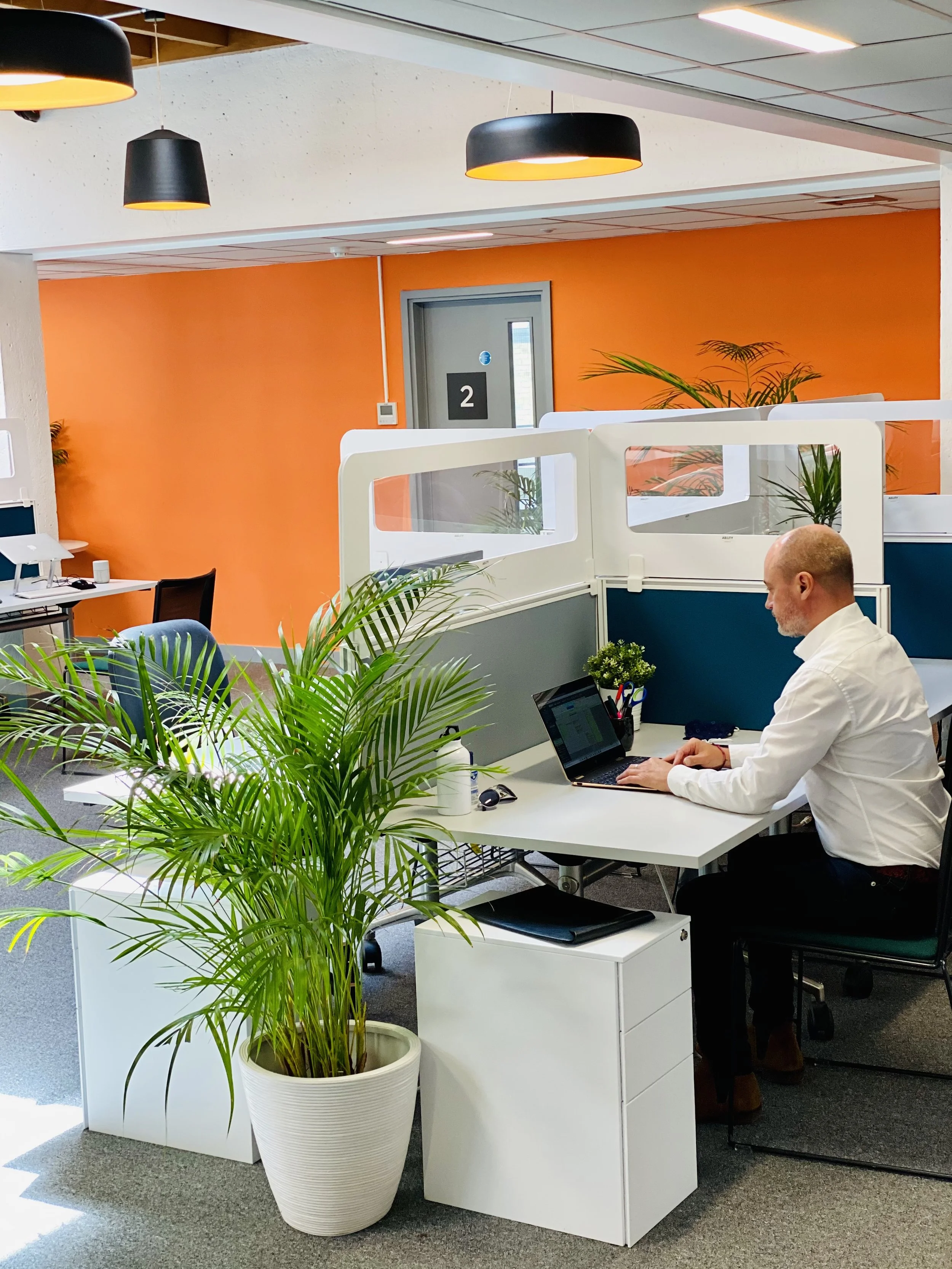 Get an allocated, fixed desk space in our communal co-working area. With privacy screens, where you can leave your belongings/hardware on your dedicated desk.