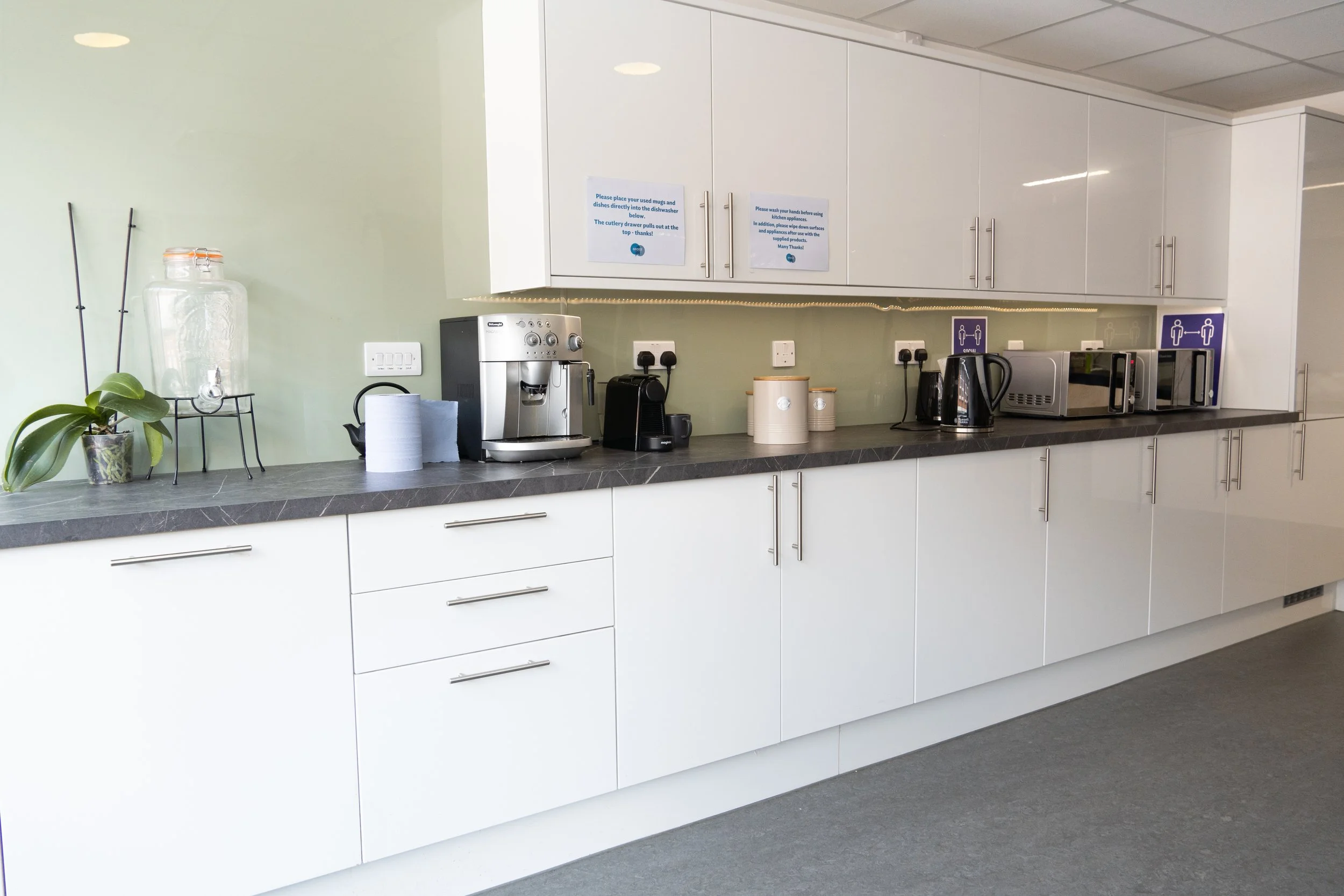 All our offices are light, bright and modern. We have seven offices around the outside of our co-working space. With desks making it a great space for your business and team.